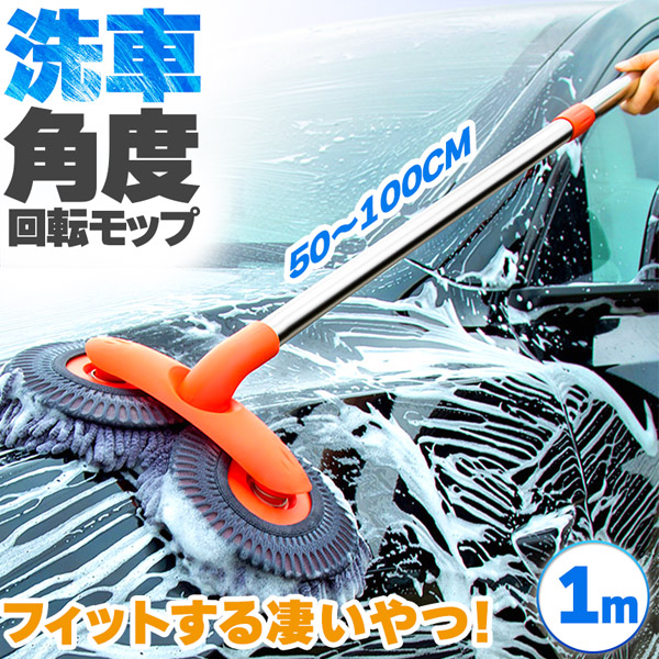 二つのモップがそれぞれ回転&角度が付く、優しくしっかり洗い上げる吸収率抜群モップ、約100cmまで好きな長さに伸縮!これを使えば簡単に愛車を綺麗にできます。モップ部分だけも外せるのでしっかりキレイに清潔のできます。