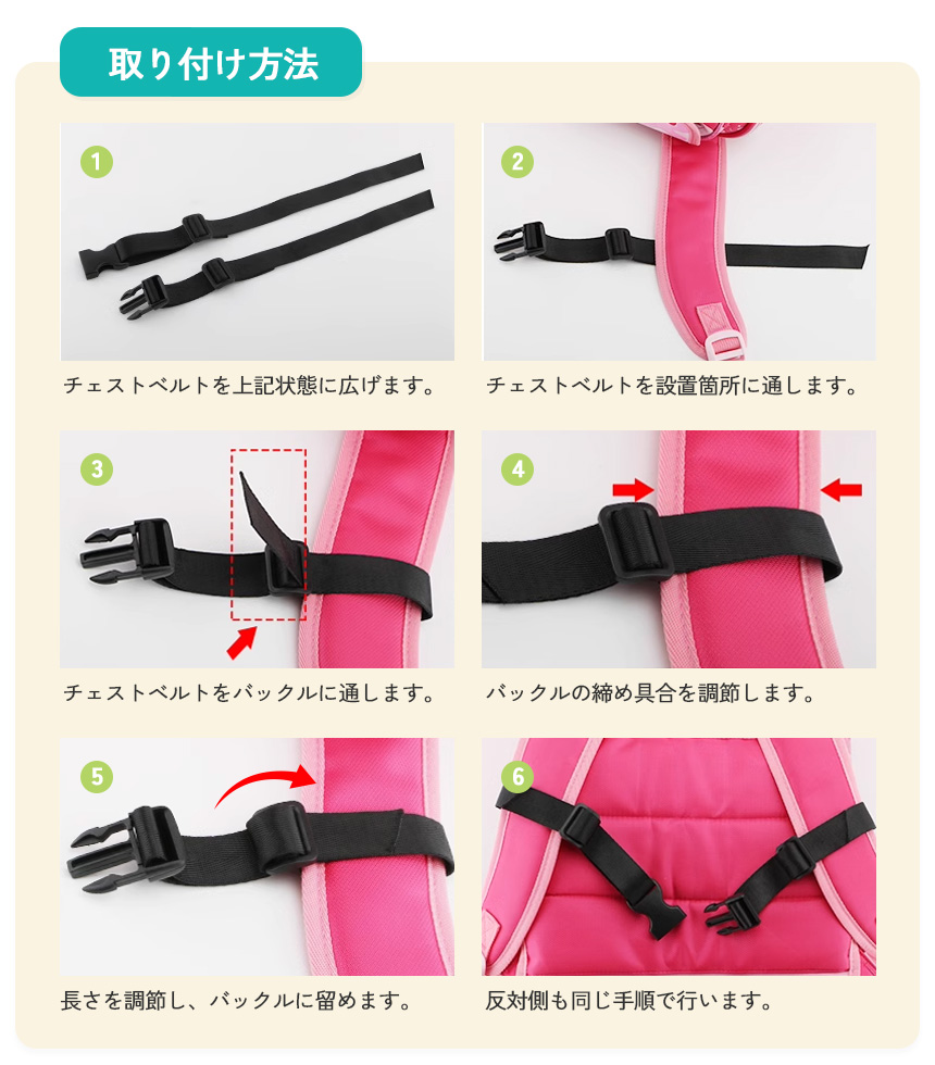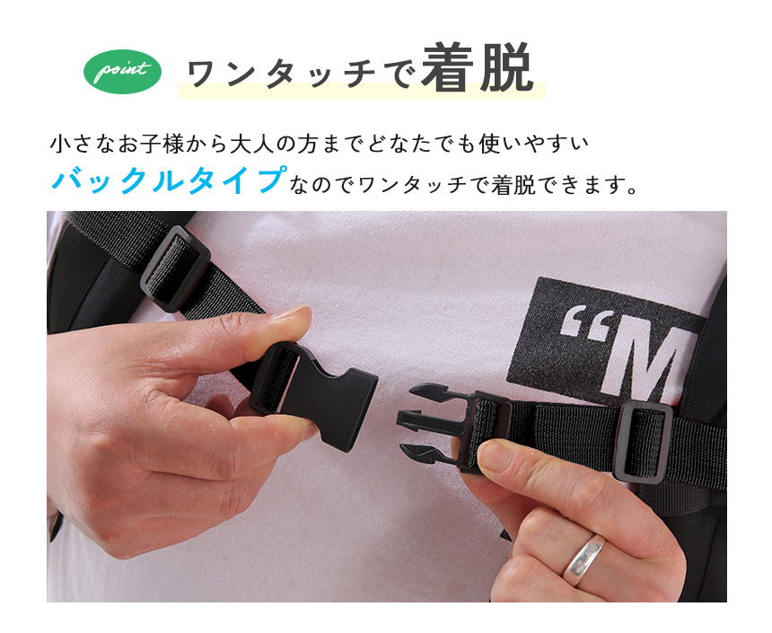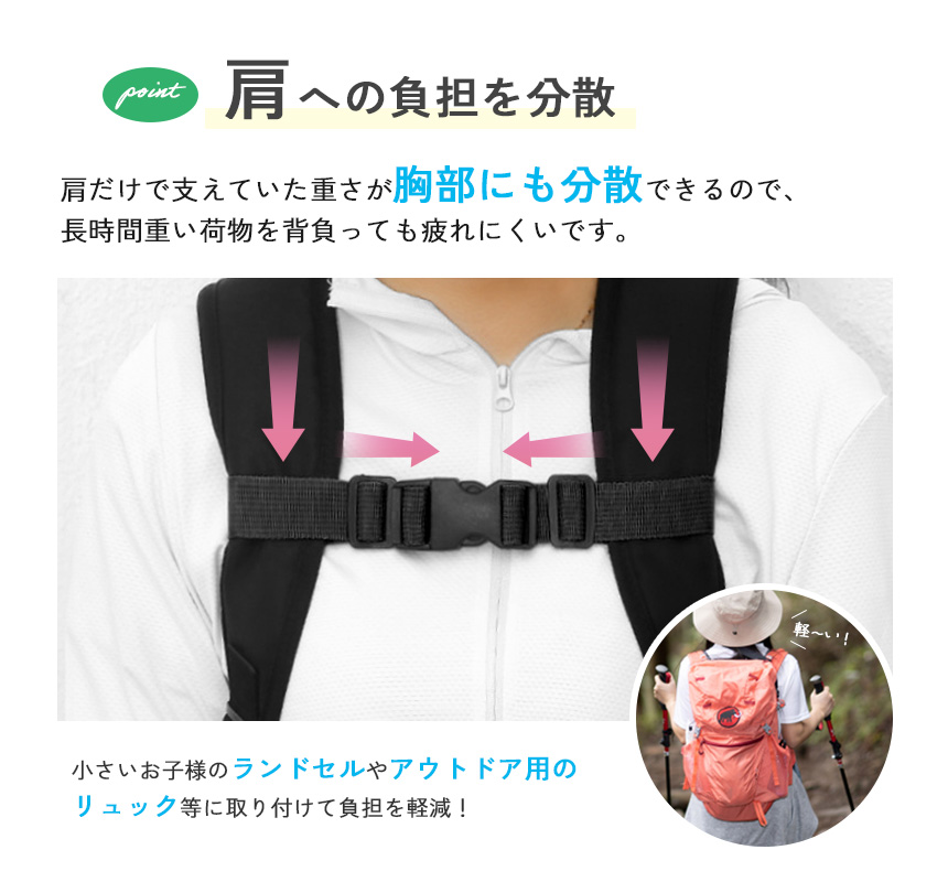 小さいお子様のランドセルやアウトドア用のリュック等に取り付けて負担を軽減!