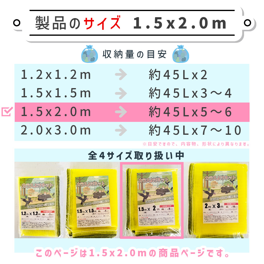 ●重りロープのカラスよけゴミネット●【カラス被害に】カラスのゴミ荒らしの被害は悲惨、、ゴミをこれでもかとあさって散らかしていきます。一回のみならず、記憶して何度もやってきて、ついには仲間も引き連れて荒らし放題、、そんな被害にあわないように、風に強くしっかりくちばしからも守る、この重りロープ付きのネットで対策を!きっと効果に満足していただけます。【重りロープ】ネットをぐるっと囲むように入っているロープは、鉛を含んでいて、重みがあります。風にも強く、荒らしもしにくい丈夫で安心の素材です。【環境に優しい素材】環境に優しく、無臭、無毒、人体に無害な新しいHDPE素材を採用。引っ張り強度にも優れています。網目は4mmと細かく、くちばしからも守ります。