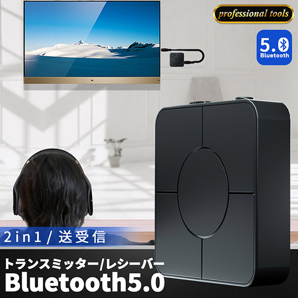 トランスミッター レシーバー 1台2役 Bluetooth5.0 送信機 受信機 充電式 無線 ワイヤレス 3.5mm オーディオスマホ テレビ TXモード RXモード 音楽 送信 受信 ブルートゥースios i