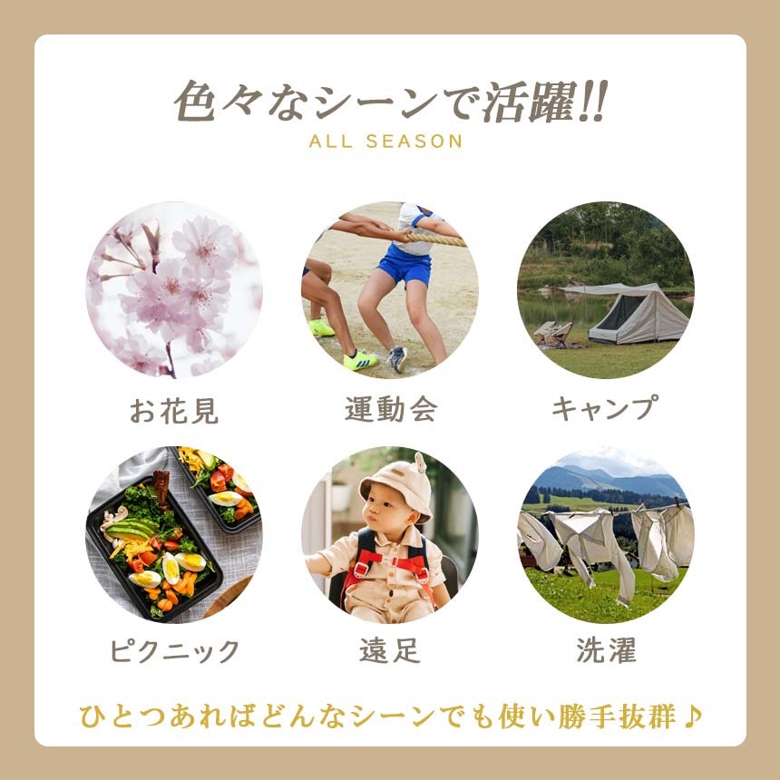 お花見/運動会/キャンプ/ピクニック/遠足などはもちろん洗濯かごとしてもお使いいただけます。