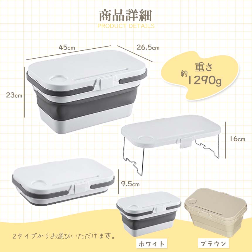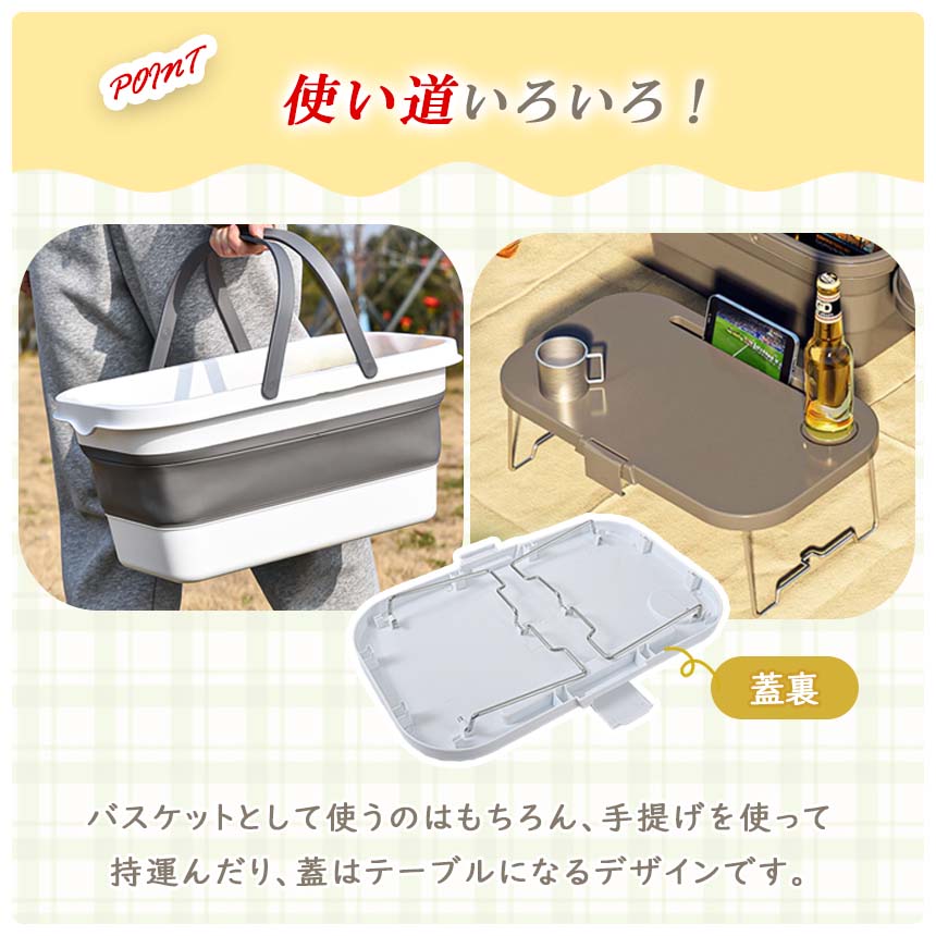 アウトドア バスケット ミニテーブル 収納ボックス シリコン コンテナ 大容量 3way 折りたたみ式 テーブル付き ピクニックテーブル キャンプテー