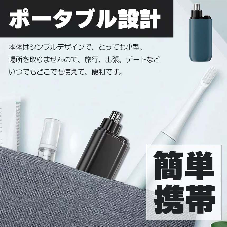 『携帯鼻毛カッター』は、持ち運びに便利なコンパクト設計で、スーツやカバンのポケットにもスッと収まります。