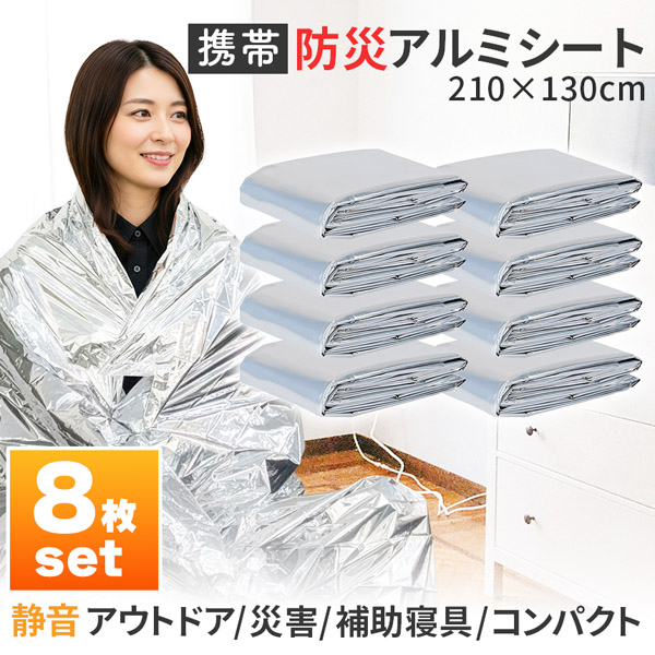 8枚セットアルミブランケット アルミシート 防災 保温 シート 210×130cm 簡易毛布 静音仕様 かさかさ サバイバルシート アルミ毛布 緊急用 防災グッズ アウトドア 車中泊 キャンプ 避難用 保温毛布 保温 静音 アルミシート 補助寝具 避難所 登山 断熱 防寒