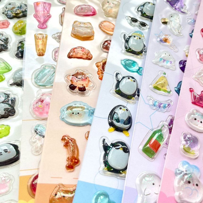 立体シールの中でも飴のように透明感がありキラキラとした質感で大人気ドロップシール!