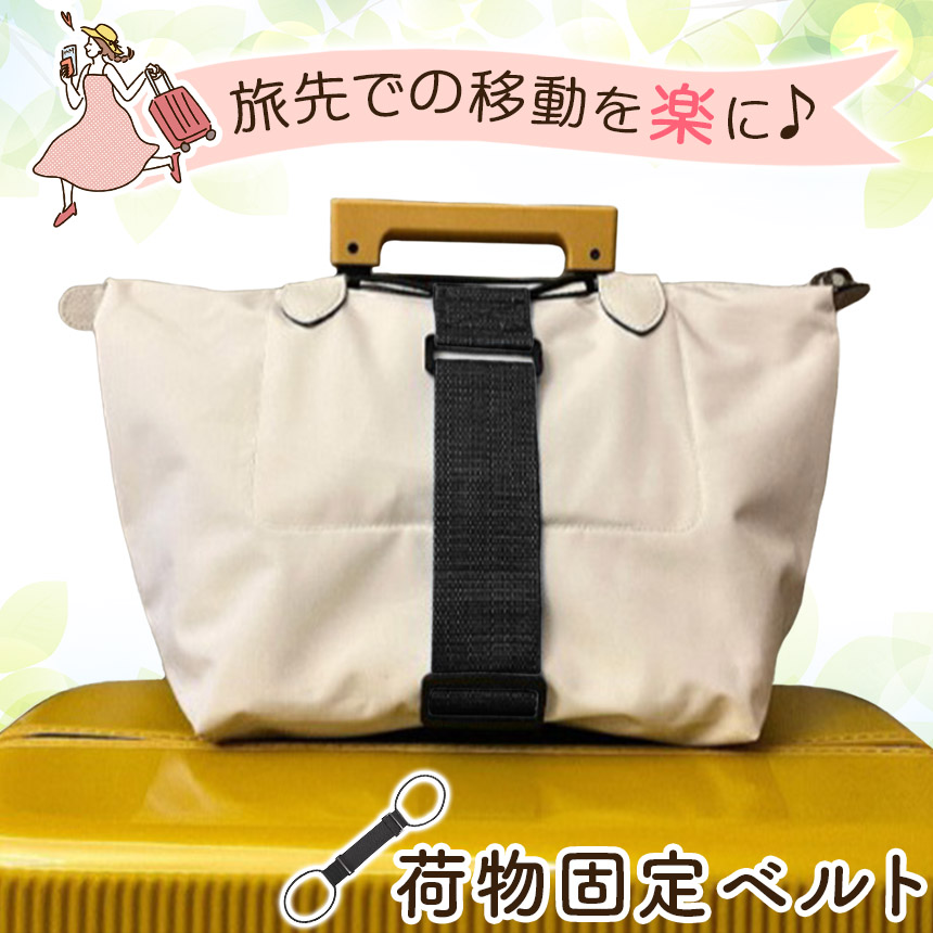 スーツケースベルト 荷物 固定 バンド ベルト ゴム 旅行 キャリーケース キャリーバッグ バッグ 鞄 スーツケースバンド 手荷物 サブバッグ とめる 止める ずり落ち防止 便利グッズ 持ち手 ブラック 黒 サイズ調節 上着 服 お土産 乗せる 掛ける ストッパー 旅行バッグ