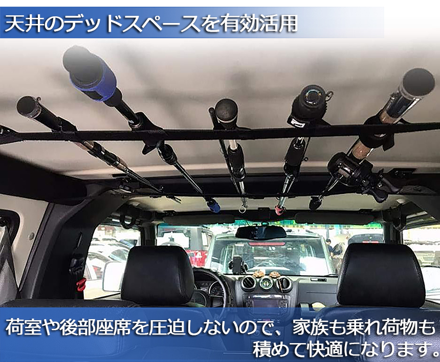 【 スペースの節約】ルーフ近に取り付け、車内を広々と使えます。ロッドラックがあれば、車の後ろが混乱することはありません。スペースを管理する優れた方法。フィッシングロッドラックは、背中の多くのスペースを節約しました。