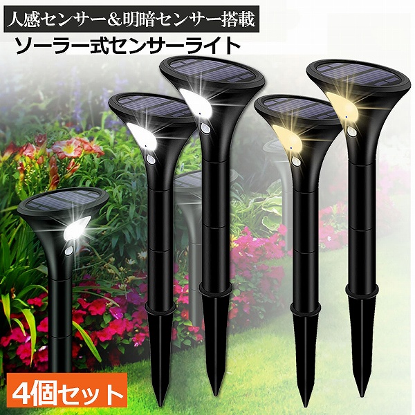 【自動点灯・消灯&人感センサーライト】ソーラーライトは光センサーが内蔵するので、自動点灯・消灯できます。暗闇や夜間に自動的に点灯でき、昼間や明るい場所で自動的に消灯になります。また、人感センサーも搭載されますので、夜間、ライトは弱い光で点灯します。人が近づくと、自動的にライトは明るくなり、人が離れてから20秒後に弱い光に戻ります。