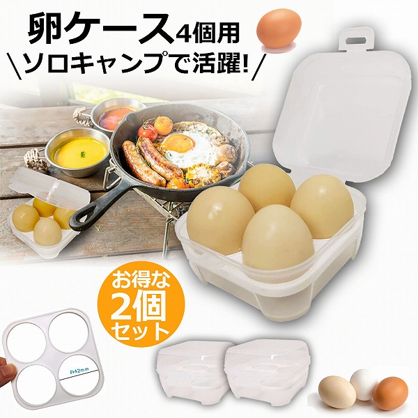 4個用:1ケースに4個の卵が収納可能となっております。振動による衝撃をやわらげる構造なので、割れにくくなっています。生卵、ゆで卵両方収納可能なため、ピクニックやアウトドアなどに大活躍のアイテムです。フタがしっかりしているので、たまごをたくさん使う人でも積み重ねることができ、他のものを載せることができるのでとても便利です!
