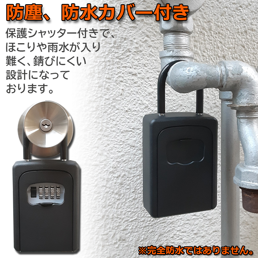 【セキュリティ性が高い】4段式ダイヤルなので、10000通りの設定番号から好きな組み合わせを選べます。4桁ダイヤル式設計は3桁より10倍高いの安全性を確保します。4桁の組み合わせは覚えやすく、リセットするのが簡単です。キーなどは紛失して開けられなくなる心配がありません。本体内部に収納できるため、外側から収納物が見えなく、屋外に取り付けても安心してご使用いただけます。