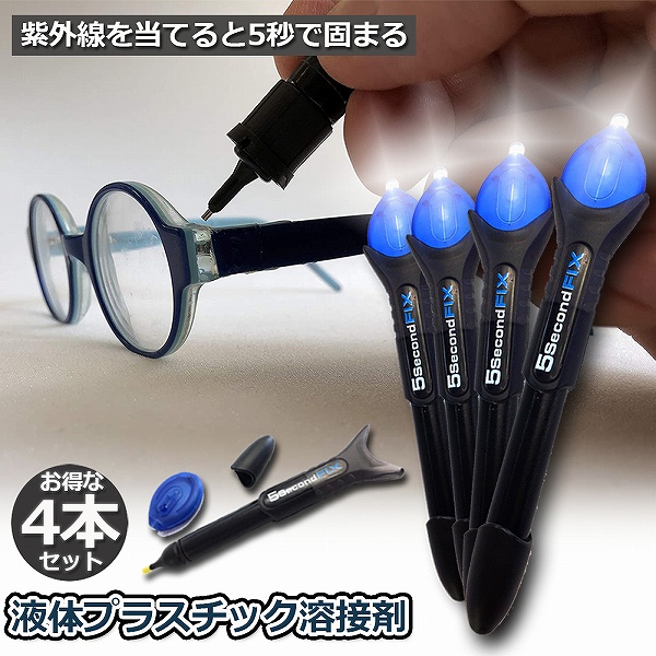 透明接着剤 4本セット 液体プラスチック溶接 UV硬化ボンド ライトボンド 紫外線 UV 5秒 固まる 金属 木材 プラスチック ガラス 破損