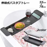 【伸縮可能で便利】浴槽の幅に合わせて伸縮できます!伸縮式で浴槽の縁にぴったりフィットのバスタブトレーです。
