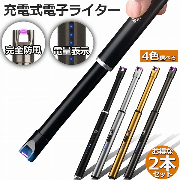 ライター 2本セット USB充電式 電気 プラズマ 点火用 無炎 ガス 不要 電子 火起こし 防風 アウトドア バーベキュー 防災グッズ 送料無料