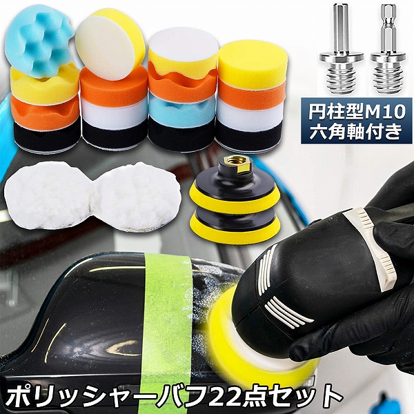 ポリッシャー バフ 80mm 22点セット 六角軸付き すぐ使える 仕上げ 電気ドリル インパクトドライバー用 洗車 車磨き スポンジ 研磨艶出し 送料無料