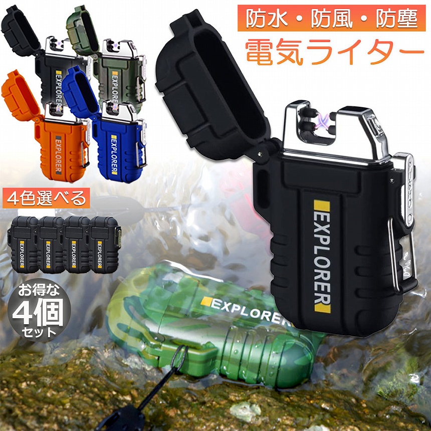 電子ライター 4個セット 充電式 プラズマ 防水仕様 USB 充電式 ダブルアークライター ガス オイル 不要 軽量?薄型 持ちやすい 無炎 防風 おしゃれ お墓参り bbq