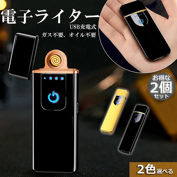 電子ライター usb ライター 電子ターボライター 2個セット 充電式ガス オイル不要 防風軽量 キャンプ バーベキュー 登山 プレゼント たばこ おしゃれ 送料無料