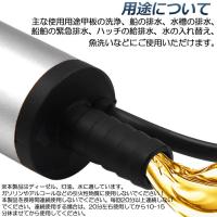 【商品仕様】ON/OFFスイッチ付き 高さ:約16cm ポンプ直径:約38mm 吐出口径:約16mm ケーブル全長:約3m 吐出量:約12L/min 揚程:2m 電圧:DC-12V 電流:1.5A 接続方式:クランプ(ワニ口クリップ) 材質:ステンレス 適用範囲:ディーゼル、水、灯油、オイル等【スイッチ付き】配線部分にスイッチがあり、ワニ口クリップをバッテリーから着脱することなく、スイッチの切り替えが可能ですので、DC12V対応の低ノイズ、高速モーターを使用、片手でワンタッチで操作ができるので、作業効率が大幅にアップいたします。
