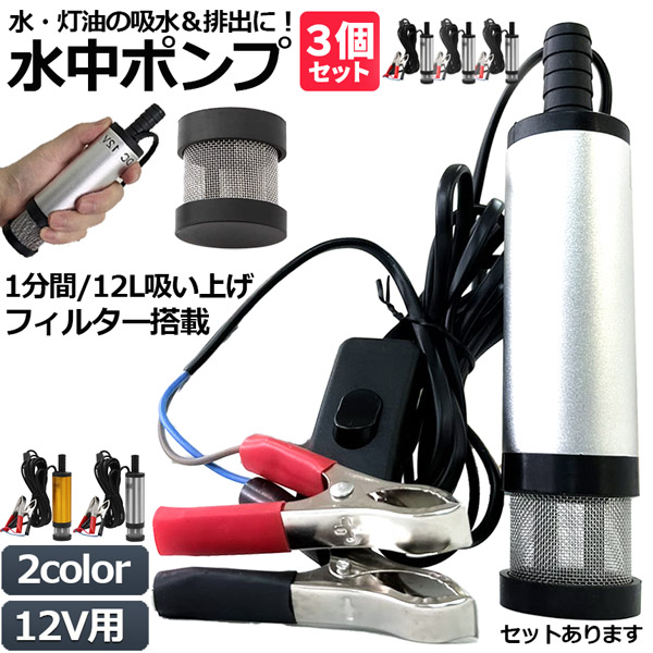 【商品仕様】ON/OFFスイッチ付き 高さ:約16cm ポンプ直径:約38mm 吐出口径:約16mm ケーブル全長:約3m 吐出量:約12L/min 揚程:2m 電圧:DC-12V 電流:1.5A 接続方式:クランプ(ワニ口クリップ) 材質:ステンレス 適用範囲:ディーゼル、水、灯油、オイル等【スイッチ付き】配線部分にスイッチがあり、ワニ口クリップをバッテリーから着脱することなく、スイッチの切り替えが可能ですので、DC12V対応の低ノイズ、高速モーターを使用、片手でワンタッチで操作ができるので、作業効率が大幅にアップいたします。