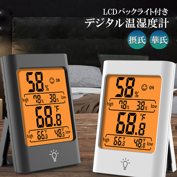 【高性能】10秒ごとにデータの更新、24時間最高・最低温湿度の表示(最高と最低のデータはリセットするまでの全ての期間での記録)、感度と精度両方とも優れています。バックライト機能も付いているので、薄暗い所でも設定と数値読みが便利です。