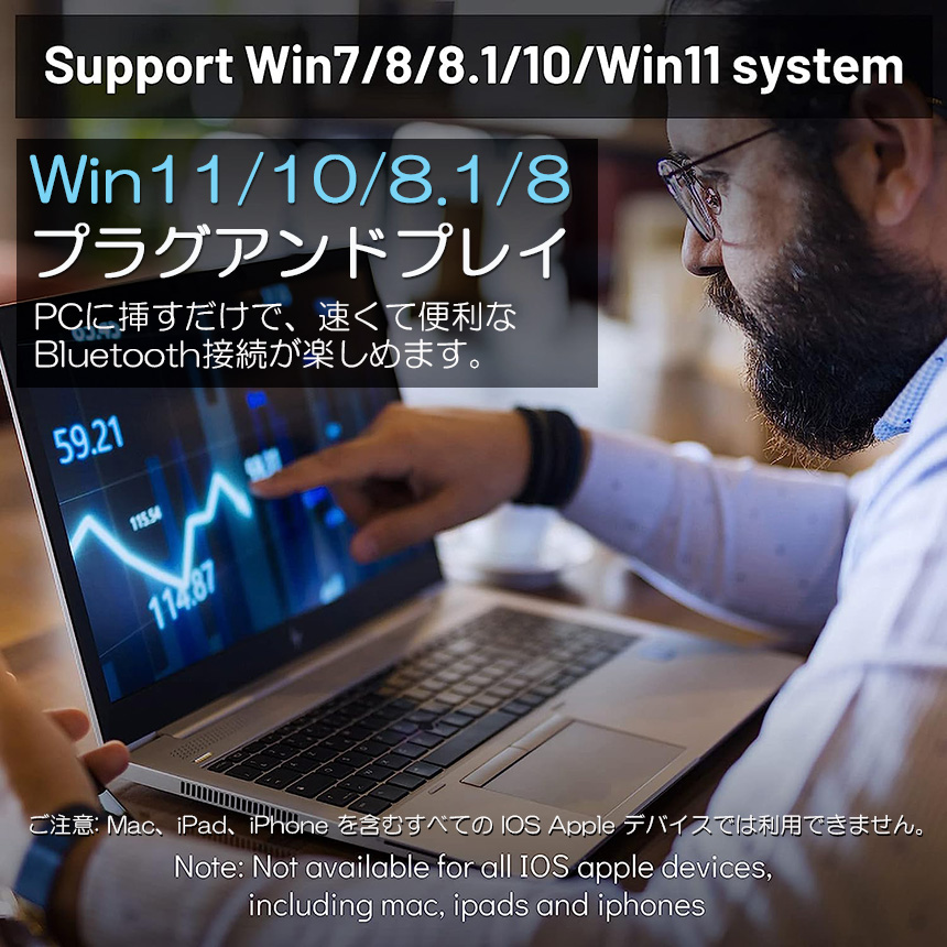 【Bluetooth 5.1アダプター】USB Bluetooth 5.1アダプターは最新のBluetooth 5.1チップを採用し、Bluetooth 5.0に比べて接続安定性と干渉防止能力が優れており、2.4GHzでの干渉による伝送損失や信号中断の可能性を効果的に低減します。周波数帯域 Bluetooth スピーカー、ヘッドe01-50a、キーボード、マウス、PS4/5 コントローラーなどと互換性があります。 (Mac OS、Linux、TV、XBOX、Autoradio には適していません) Windows 8.1/10/11 プラグ アンド プレイ、Windows 7ドライバーをインストールする必要があります。