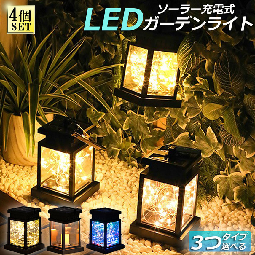 ガーデンライト ソーラーライト ランタン ランタノ 4個セット イルミネーションライト ソーラーランタン 3タイプ 屋外 おしゃれ かわいい 吊り下げ