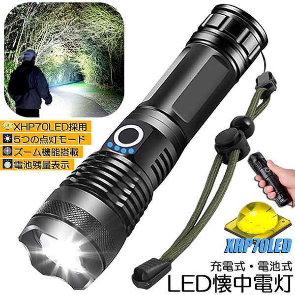 【5つの照明モード & 調節可能なフォーカス】5つの照明モードを備えた高ルーメン懐中電灯: 強/中/低/点滅/SOS、ズーム可能な懐中電灯でズーム可能な光を実現し、広い範囲の投光器やスポットライトを発します。 安全で信頼性が高く、使いやすいです。 キャンプ、登山、ハイキングなどに最適な懐中電灯です。