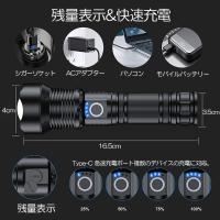 【10000 高ルーメン懐中電灯】耐久性のあるLEDチップ使用、最大ビーム距離500メートル (1640フィート) 、部屋全体を簡単に照らしたり、最大1600フィート離れたところの物に焦点を当てたりできます。 長距離観測に適した強烈スポットライト。