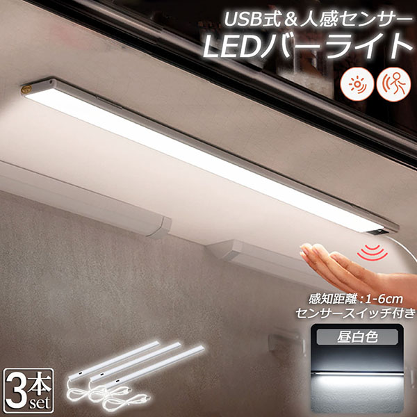 人感センサーライト キッチンライト フットライト 3個セット LEDバーライト センサーライト 40cm 昼白色 バーライト タッチレス センサ