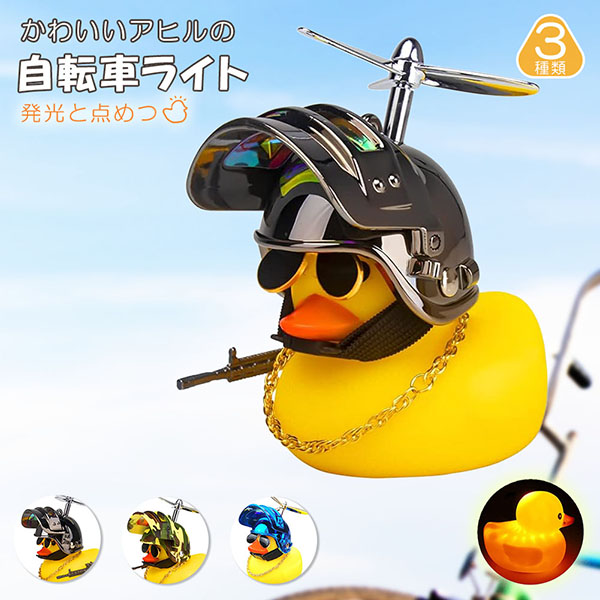 パーツを外しているとかわいいアヒルちゃんで、ヘルメット等のパーツをつけると戦闘モードで渋くてかっこいいアヒルちゃんになります。軽量コンパクトで、点灯モードと点滅モードの2つの光り方のライトを搭載。押して離すと音もします。底部は取り外し可能で、内蔵ボタン電池の交換が可能です。
