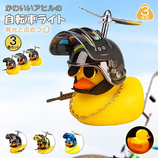 パーツを外しているとかわいいアヒルちゃんで、ヘルメット等のパーツをつけると戦闘モードで渋くてかっこいいアヒルちゃんになります。軽量コンパクトで、点灯モードと点滅モードの2つの光り方のライトを搭載。押して離すと音もします。底部は取り外し可能で、内蔵ボタン電池の交換が可能です。