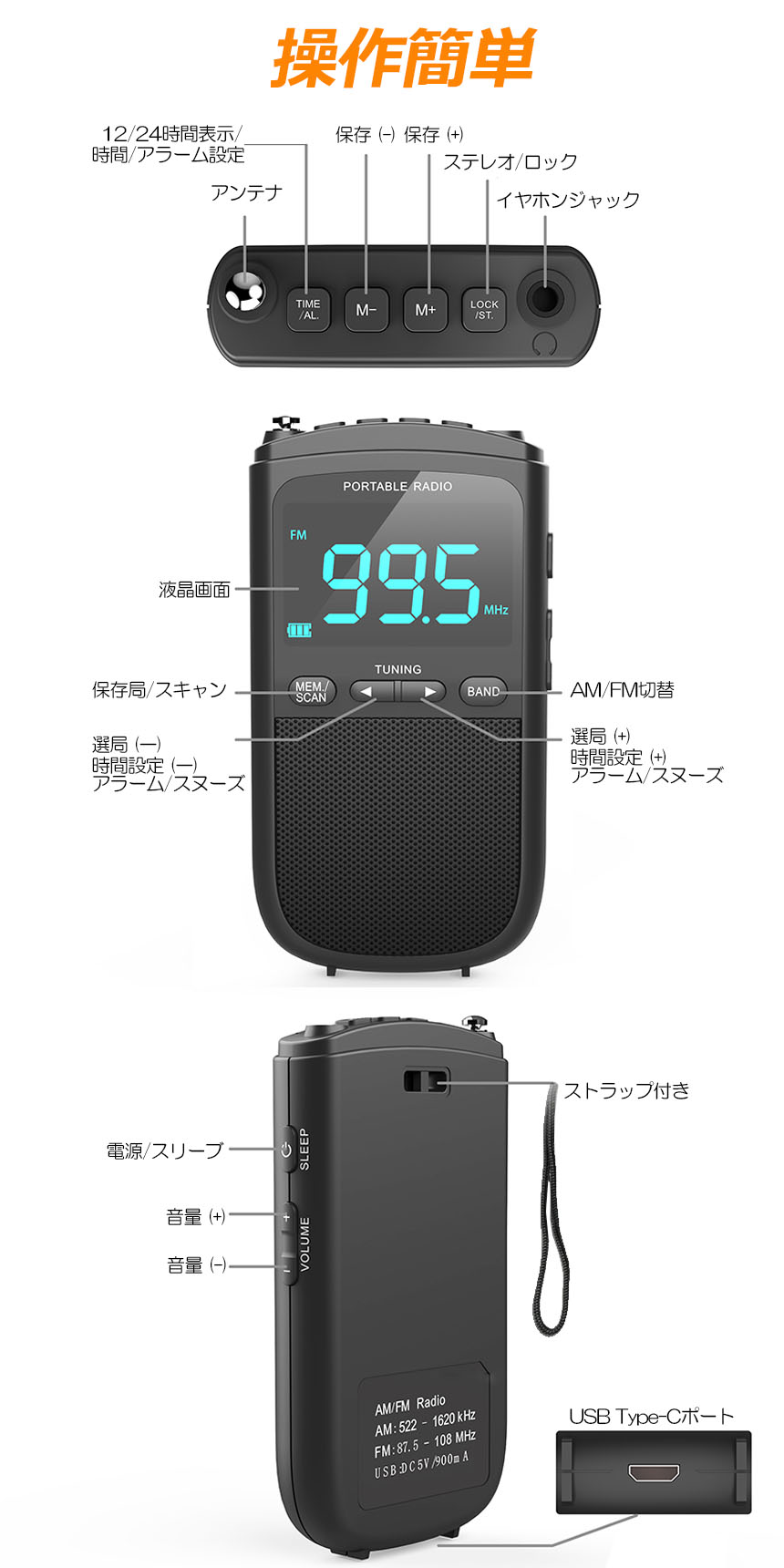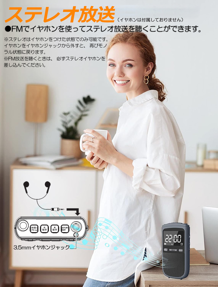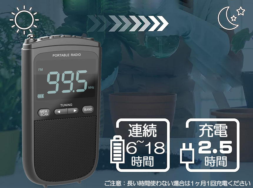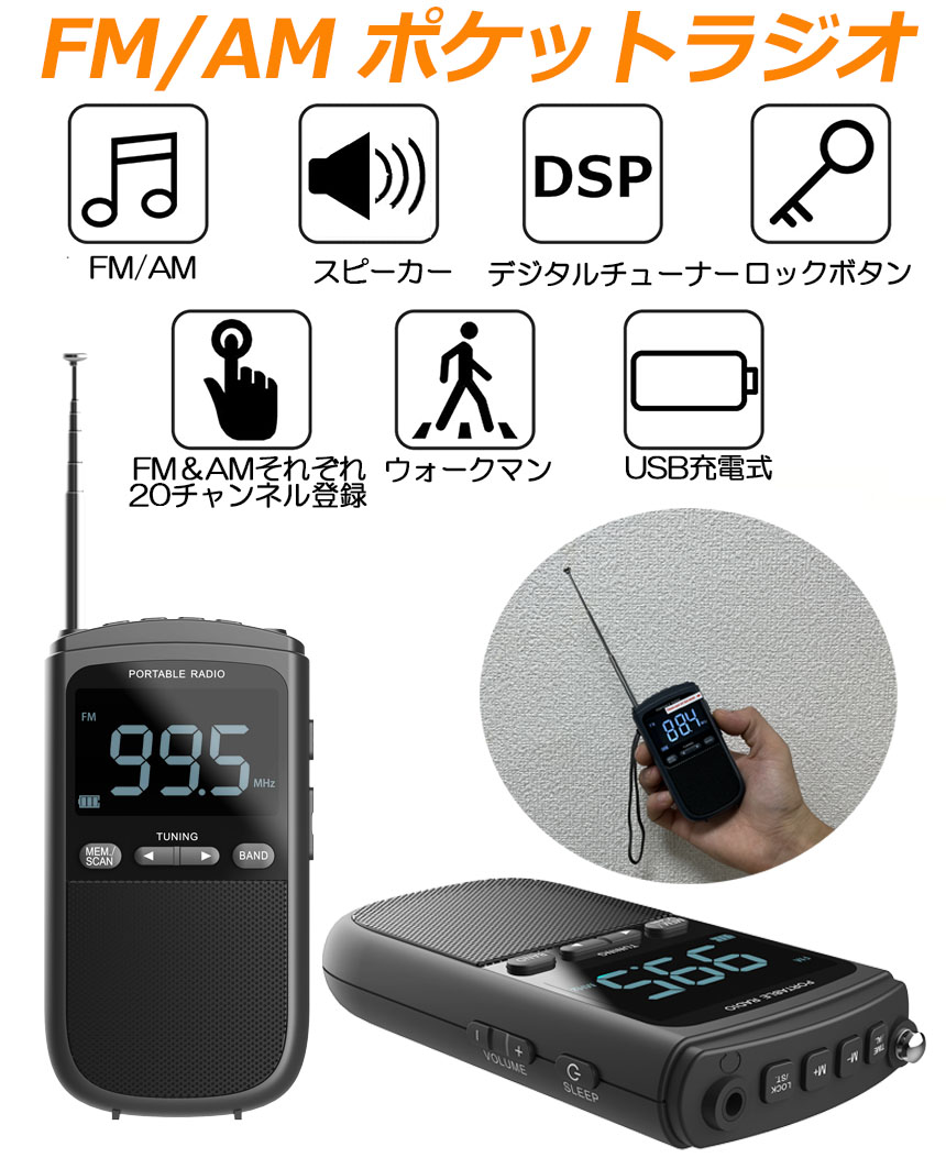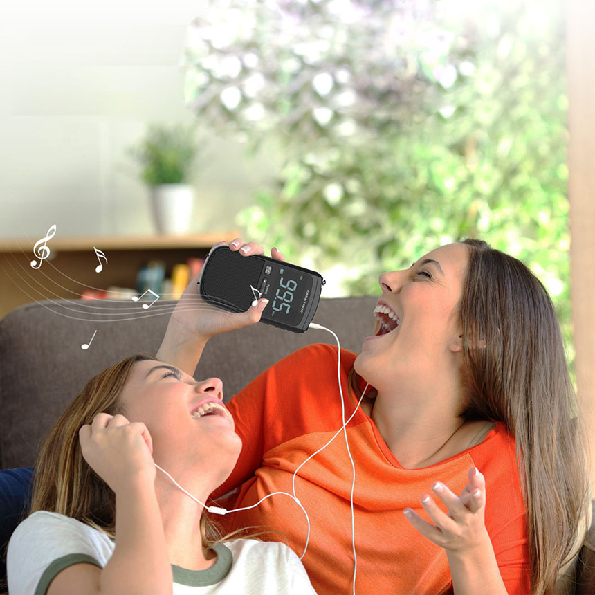 ●ストラップ付きのデザインで、ラジオを手首やポケット、ハンドバッグ、バックパックに簡単に装着できます。