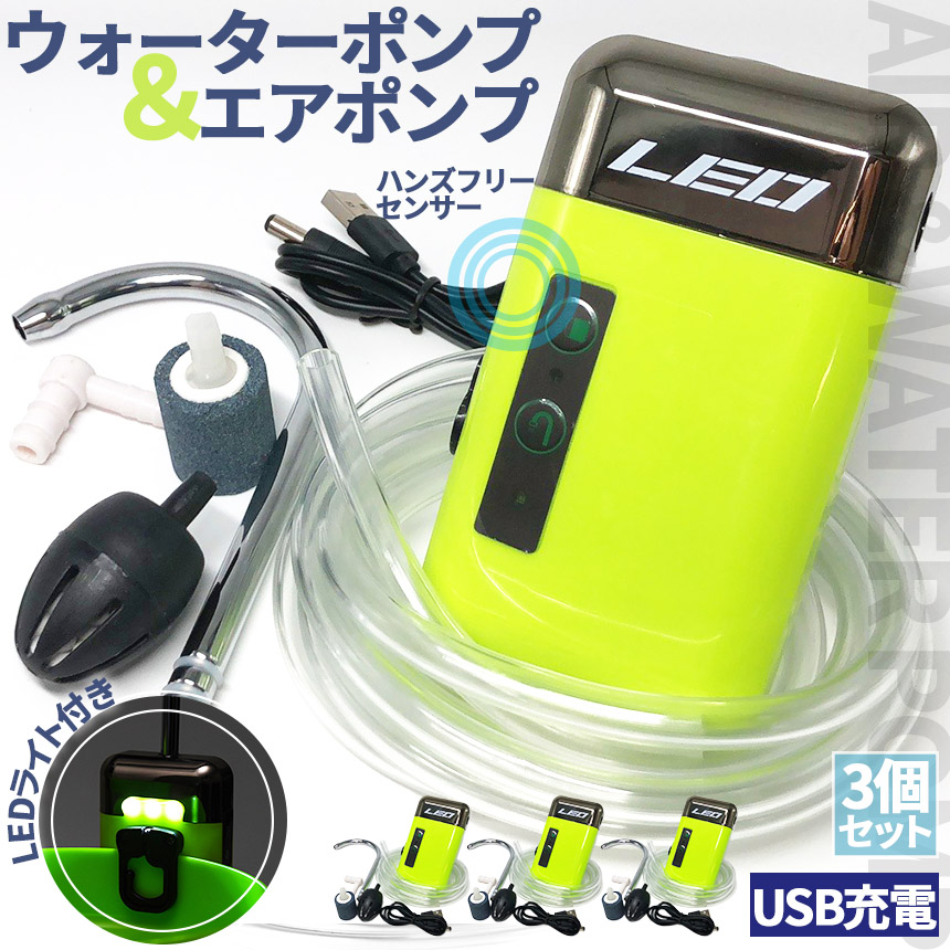 【エアーポンプ&ウォーターポンプの2役】エアーポンプとウォーターポンプ、そしてハンズフリーで利用できるセンサー付き!小型でも多機能なポンプで、充電式だから、コンセントを気にする必要もありません♪【センサー感知で使用できます】製品本体に触れずに使用可能です。電源ボタンを長押しすると、赤いランプが光り、センサーモードになります。もう一度長押しでOFFになります。【使用用途】釣りやキャンプといったアウトドアや、畑や農園などの水道がない場所での手洗いなど、用途様々!