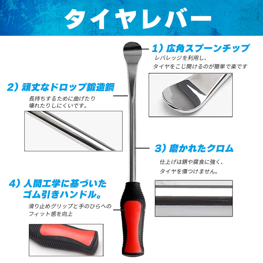 オートバイ、バイク、自転車、ガーデントラクター、芝生トラクター、スクーターなどの小さいタイヤまでご対応できます。タイヤレバーは、タイヤ交換以外にも様々な作業時に使用できます。