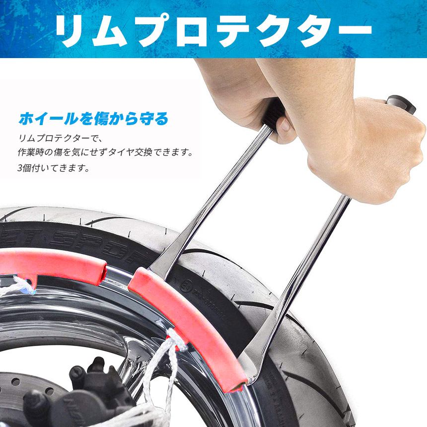 独特な弧状設計でリムを保護します。本体は柔軟なポリエチレンゴム素材を採用し、タイヤ交換時、タイヤレバーでの傷つきや塗装剥がれからリムを保護できます。(傷が心配な方は、厚めのタオルや他の保護できるものを併用することをお勧めします。)