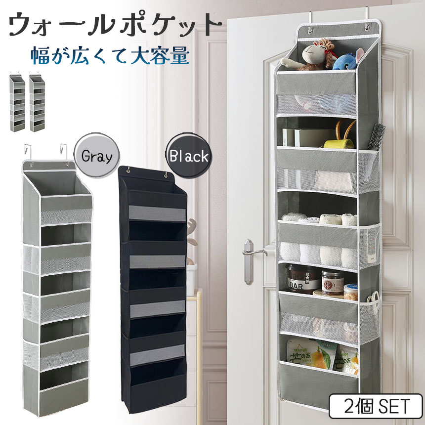ウォールポケット ドア掛け収納 5段 2個セット サイドにもポケットあり クローゼット 吊り下げ 大容量 片付け 片づけ 整理 タオル 調味料 小物