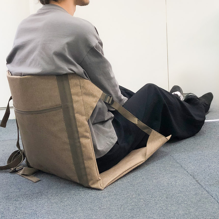 【コンパクトなどこでも座椅子】丸めてコンパクト!簡単ポンと開けば使いたいときにすぐ使える!腰や、地面を気にせずどんな場面でも大活躍です♪椅子の背面に収納できるメッシュポケット付きで便利!フラットにすれば2人掛けのクッションにもなって2WAY!【コンパクト・軽量】折りたためば約44×15cmのコンパクトサイズで、ショルダーや手持ちにできる調節可能な持ち手もついていて持ち運びも楽々!重量も約615gと超軽量なので、荷物がかさばらず、重くならず持ち歩けます。旅行やライブ、フェス、釣り、キャンプなど、遠出をするときにもぴったり!