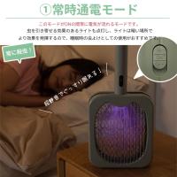 1のモードは金属ネットに常に電気が流れ、虫を引き寄せるUVライトも点灯するので、置き型として睡眠時の虫よけなどに適しています。