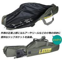 ・外側の正面上部にはルアーやリールなどの小物の収納に便利なジップポケットを装備。他にも複数ポケットを設けており、アイテムを種別管理して収納することができます。
