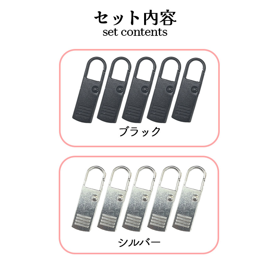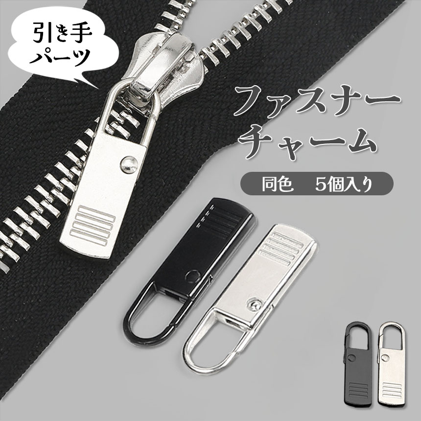 ファスナー 引き手 引手 ジッパー 持ち手 5個セット チャーム 長方形 つまみ 修理 交換 補修 チャック パーツ 取っ手 金具 バッグ 服 ポーチ