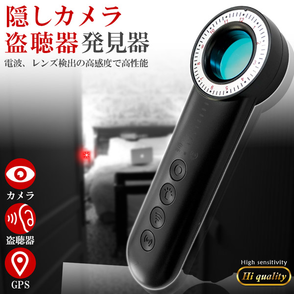 盗聴器、隠しカメラを発見する高性能機器電波キャッチ、赤外線でレンズ探索【不安を安心に、高性能発見器】・女性でも操作、持ち運びやすい。・電波をしっかりキャッチ。・音でお知らせ、強度も表示。・隠しカメラのレンズも探せる。