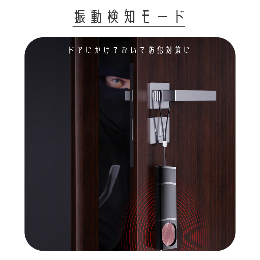 ・振動検知モードでは、本体が動くとお知らせしますので、ドアにかけて置いたりすれば防犯にもなります。