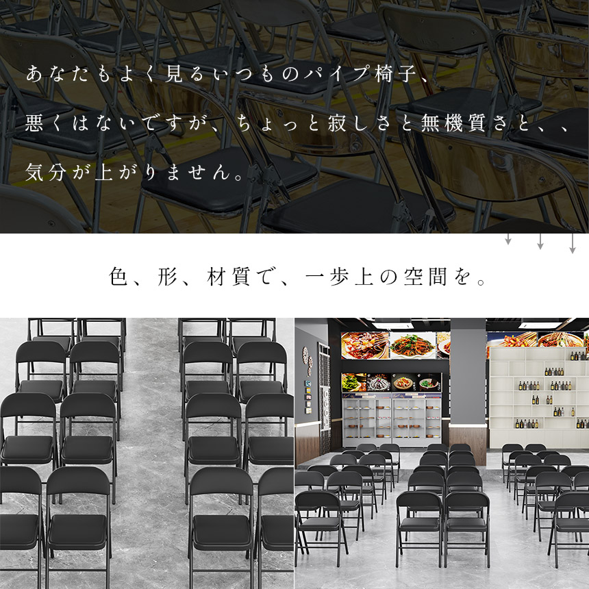 ◎高強度で座り心地もいい折りたたみチェア◎・PUレザーでお手入れが簡単!・当社はパイプの厚さが違う!・見た目が、ん〜...ないつものとはおさらば!・お家でもモダンにおしゃれに使える!・会議や集会にもってこいの利便性!