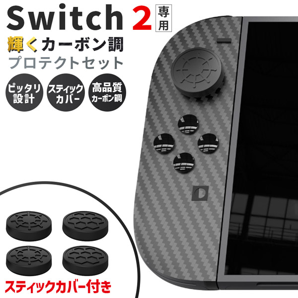 Nintendo Switch2 カーボン調 保護シート スティックキャップ TYPE-Cカバー イヤホン ホールカバー