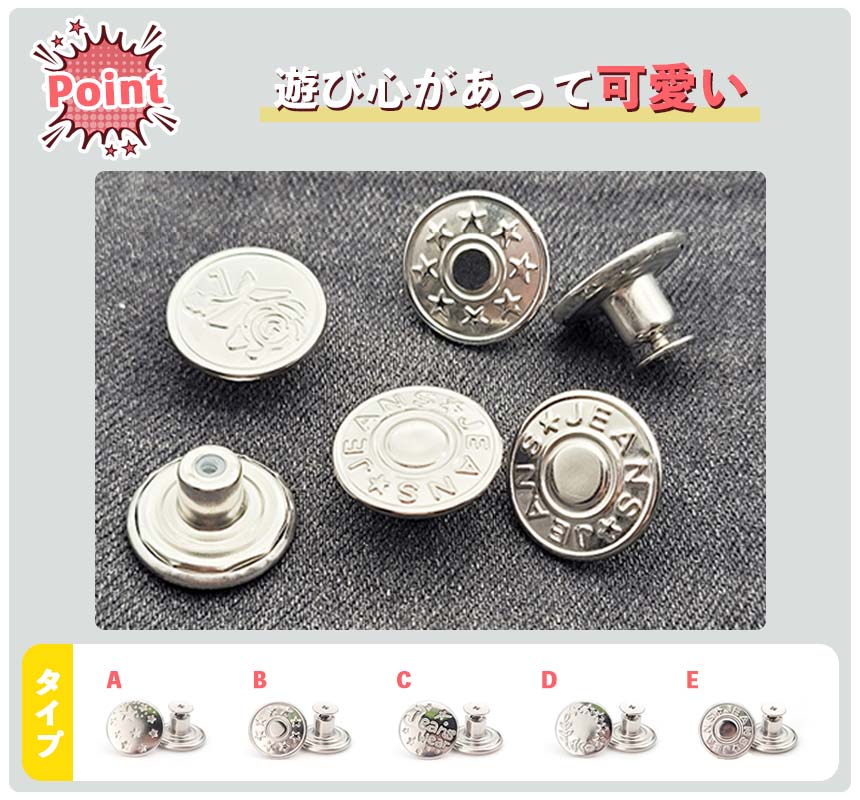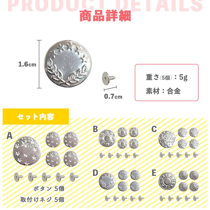ジーンズ ボタン 5個セット ウエスト 調整 詰め お直し デニム パンツ デニムボタン ジーンズボタン 小さめ サイズ調整 ねじ込み式 フロント 袖口 洋裁 洋服 手芸 クラフト アンティーク シルバー タックボタン 交換 DIY 取付け簡単 柄 付け替え リメイク おしゃれ 裁縫 服飾