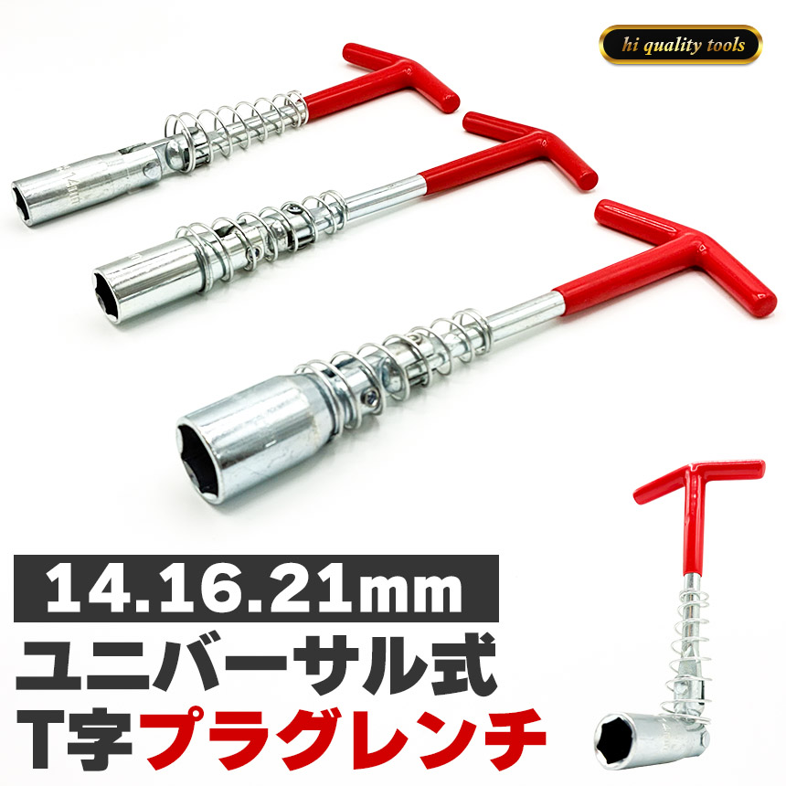 プラグレンチ ユニバーサル式 T型 14mm 16mm 21mm プラグソケット ソケットレンチ スパークプラグレンチ バイク 車 メンテナンス 工具 自動車 整備 DIY エンジン プラグ交換 カー用品 バイク用品 レンチ 六角 高耐久 クロムバナジウム鋼 スプリング付 プラグ交換用レンチ