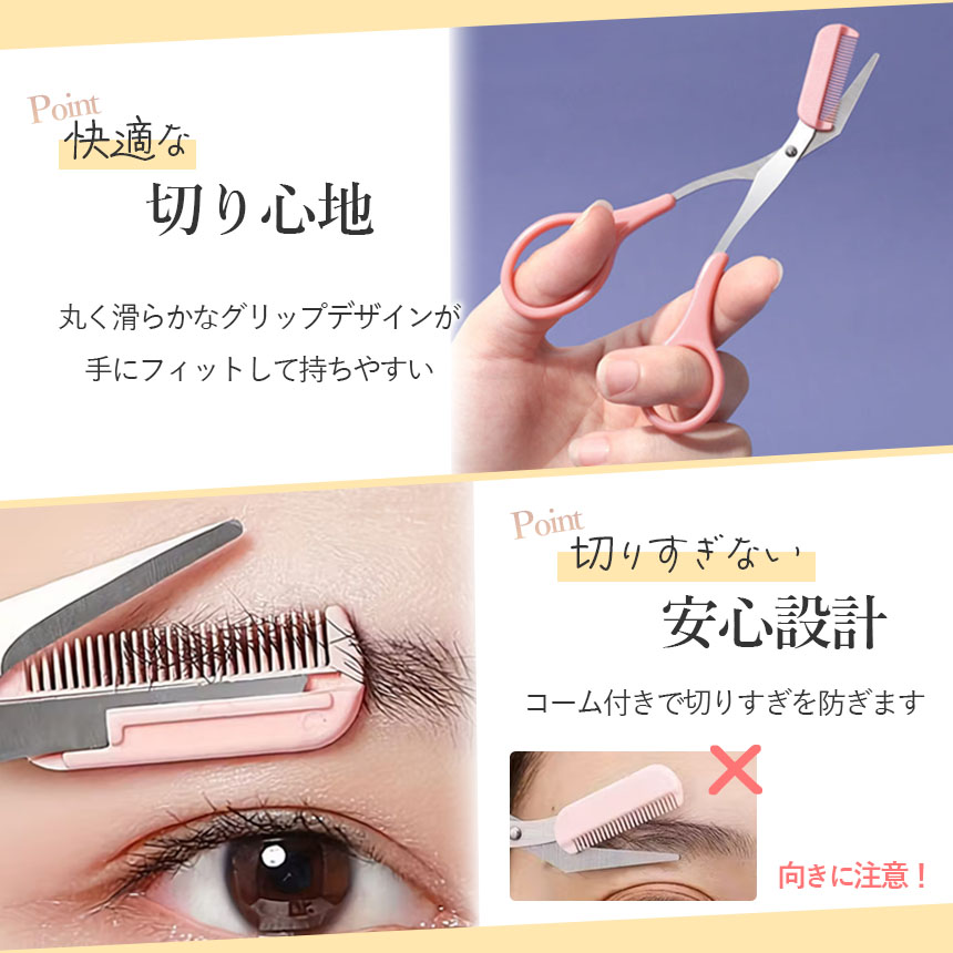 眉毛 ハサミ まゆげ はさみ レディース メンズ コーム 眉毛バサミ 眉毛コーム くし クシ まつげコーム 眉毛カット 眉 眉カットハサミ 眉すきバサミ カミソリ 眉はさみ 眉毛用 眉剃り ケアグッズ アイブローカット くし付き眉カット