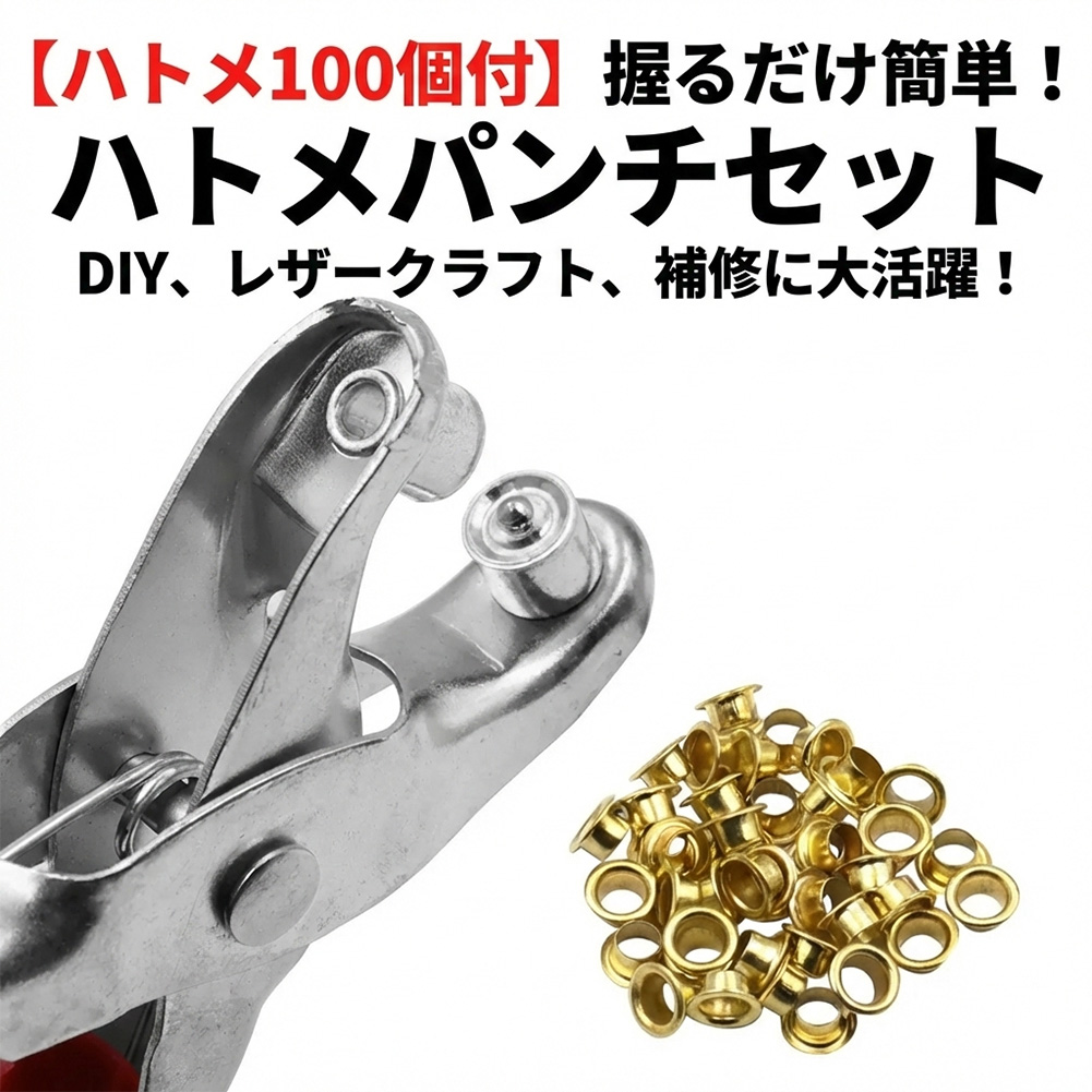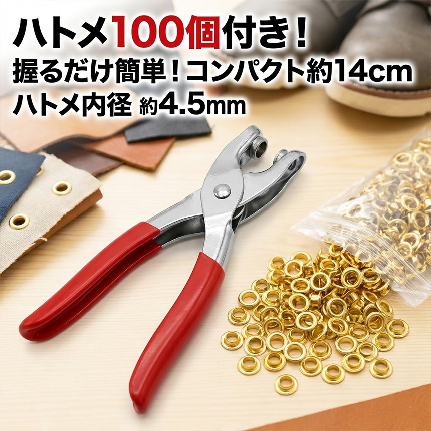 ハトメパンチ 4.5mm ハトメ 100個付 ハトメプライヤー 鳩目 穴あけ カシメ 工具 DIY レザークラフト 手芸 ベルト 靴 補修 アイ