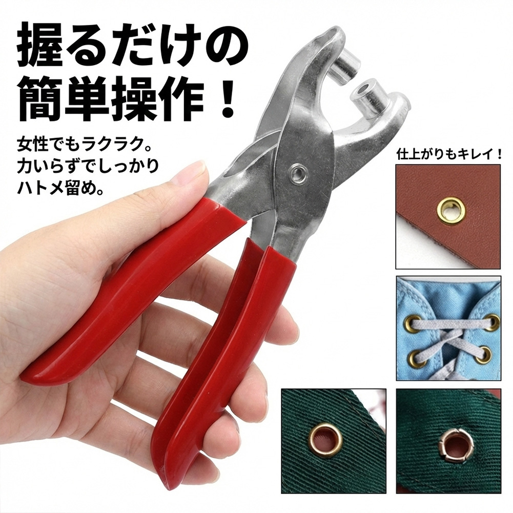 ハトメ玉100個付き!握るだけで簡単、ハトメパンチ。