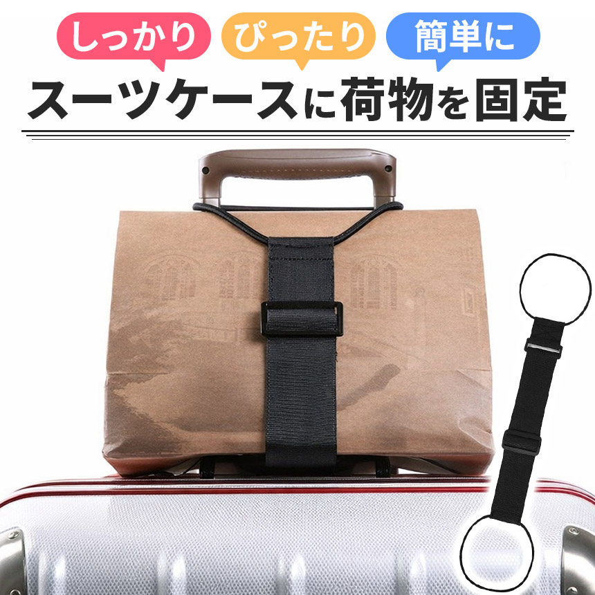 スーツケースベルト 荷物 固定 バンド ベルト ゴム 旅行 キャリーケース キャリーバッグ バッグ 鞄 スーツケースバンド 手荷物 サブバッグ とめる 止める ずり落ち防止 便利グッズ 持ち手 ブラック 黒 サイズ調節 上着 服 お土産 乗せる 掛ける ストッパー 旅行バッグ