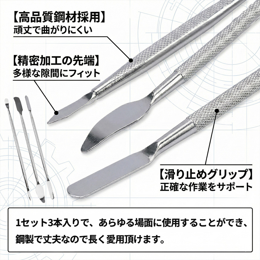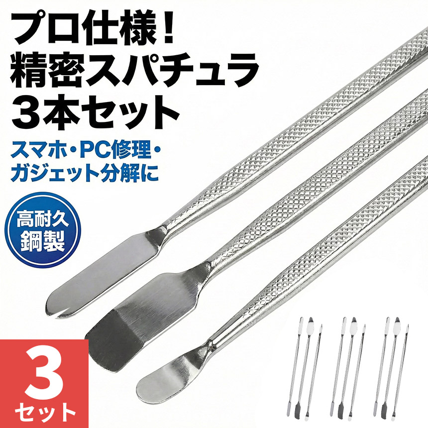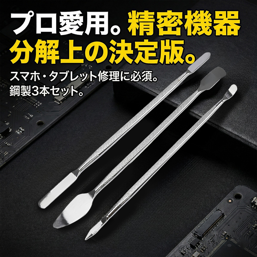 3個セット スマホ分解修理ツール 3本セット 金属製オープニングヘラ 精密作業対応 滑り止めグリップ採用 iPhone Android タブレット ノートPC 修理 DIY メンテナンス コネクタ取り外し バッテリー交換対応